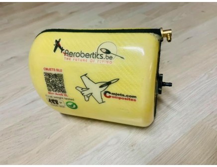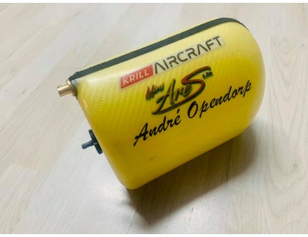 Last version of Mini AvantiS 1.3L tank, the perfect shape let install the tank into fuselage without cut or make some modification. The brackets let fix the tank with security and in a perfect place. All tasnk equipped with barb fittings has a 90 degrees vent. The back bracket grip the plywood and you only need 2 screws for fix it, includes with the tank.
