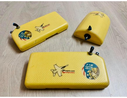 Set of 3 Kevlar Tanks for F-16 1:6,75 scale of Skymaster. 2 Side Tanks of 1.25L each more 1 Central tank of 1L. Festo fittings NOT include in the price, normally barb fittings.